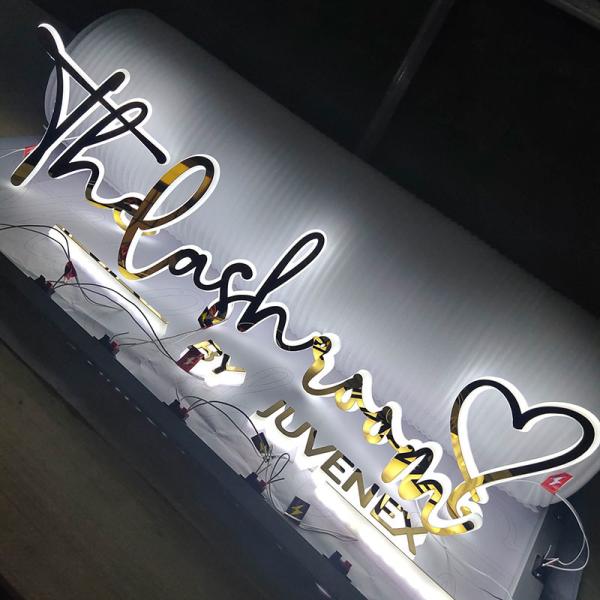 Custom Mirror Neon Glasses Sign Acrylic Box Led Letter Build up Signage Light up the Dark Flex Neon Sign Images |